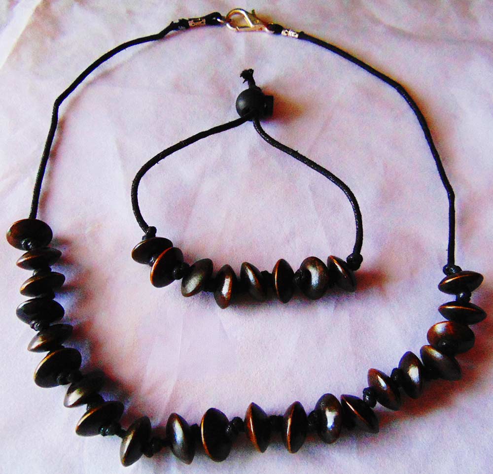 Wood Unisex Leather Rope Necklace Set